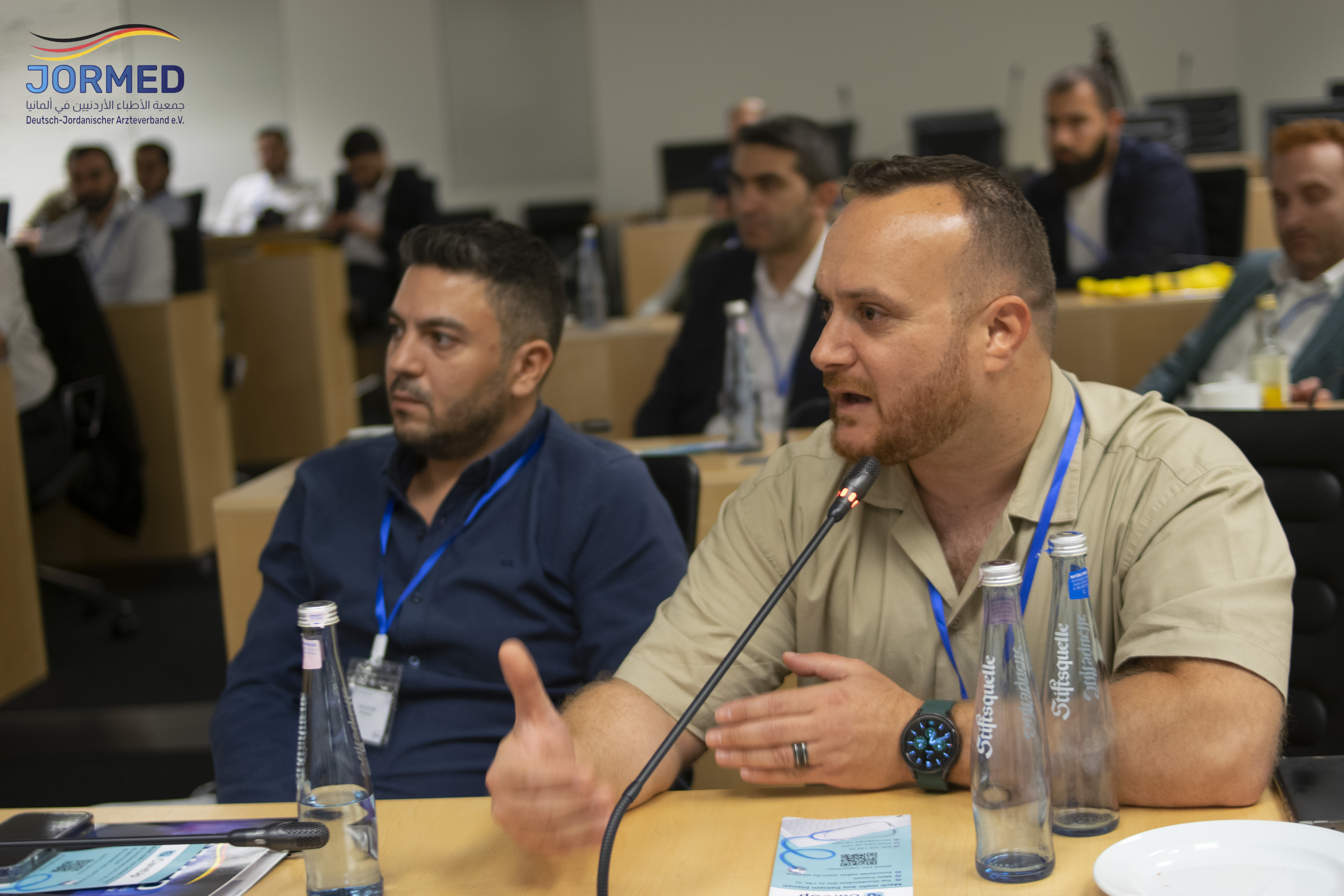 The conference was inaugurated by the Association’s President, Dr. med. Mohammed Abdel-Hadi, who welcomed the participants and highlighted the Association’s key achievements over the past year. He emphasized the Association’s role in supporting young doctors and strengthening scientific cooperation between Jordan and Germany.