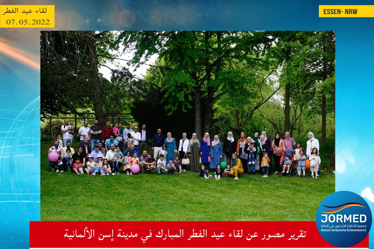 قامت جمعية الأطباء الأردنيين في ألمانيا، ضمن مشاركتها باحتفالات عيد الفطر المبارك، بتنظيم لقاء العيد الأول الذي تضمن عقد ملتقى للتعارف بين الأعضاء وعائلاتهم، وزيارة لحديقة مدينة Essen في ولاية النوردراين.
