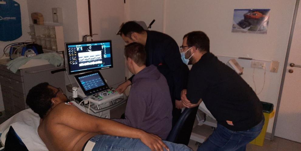 The course was supervised by colleagues Dr. Mohammed Abdel-Hadi, the head of the cardiology and emergency medicine department, and Dr. Wael Hdaib, and included four hours of theoretical training on the basics of echocardiography, followed by four hours of practical training on the echocardiography machine.
