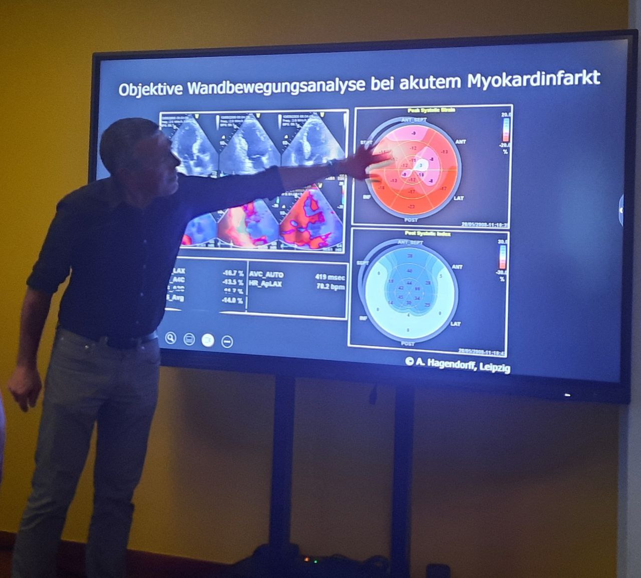On November 18, 2023, a high-caliber echocardiography course took place in Kassel, organized in collaboration with the renowned Echo Academy Kassel. Under the guidance of PD Dr. med. Ole Breithardt, this course provided a comprehensive insight into the fascinating world of echocardiography, focusing on 'Strain Analysis'.